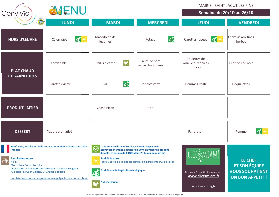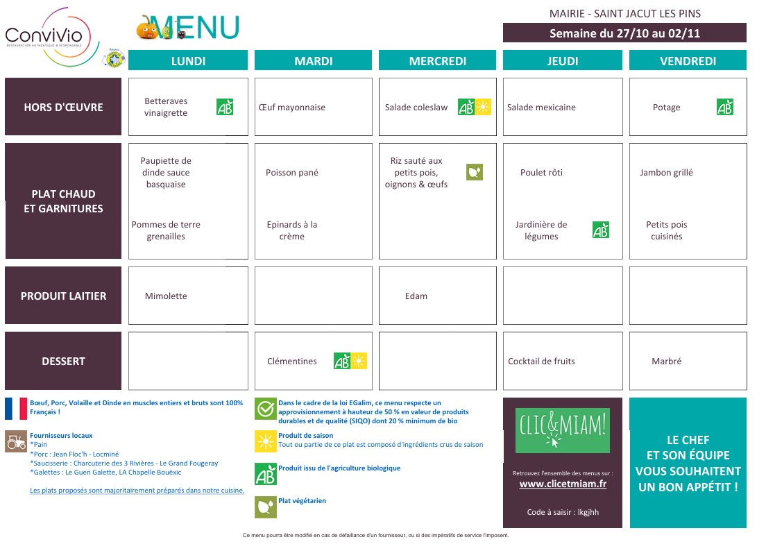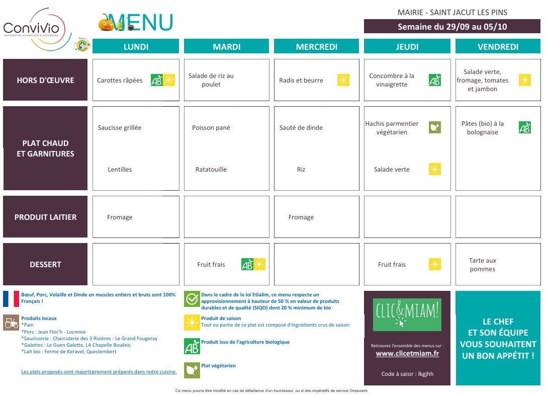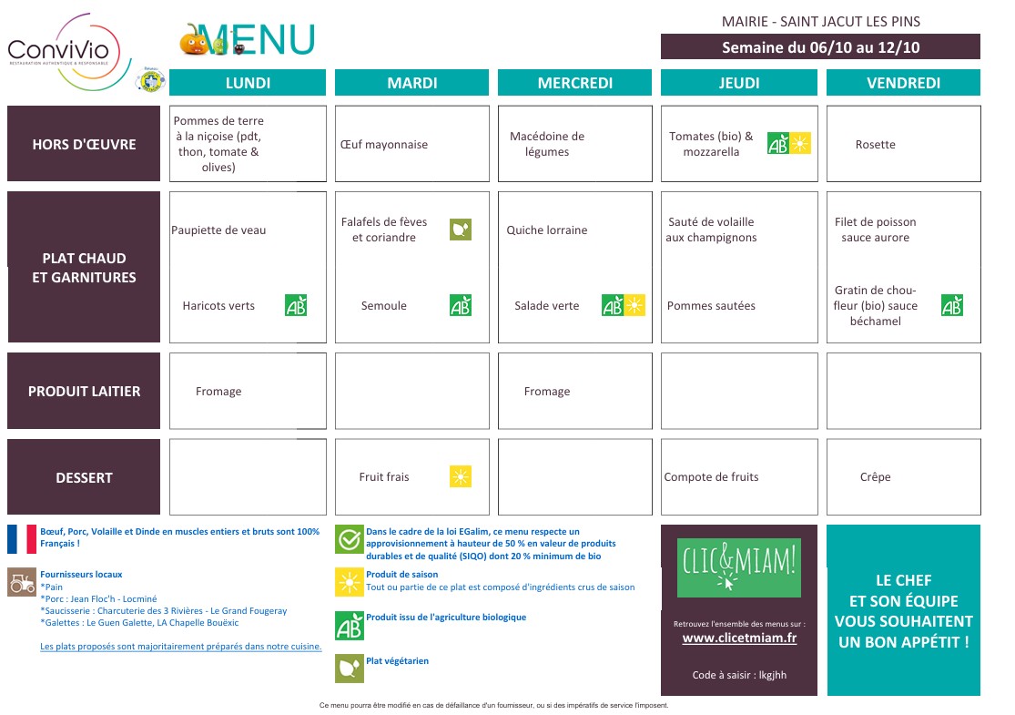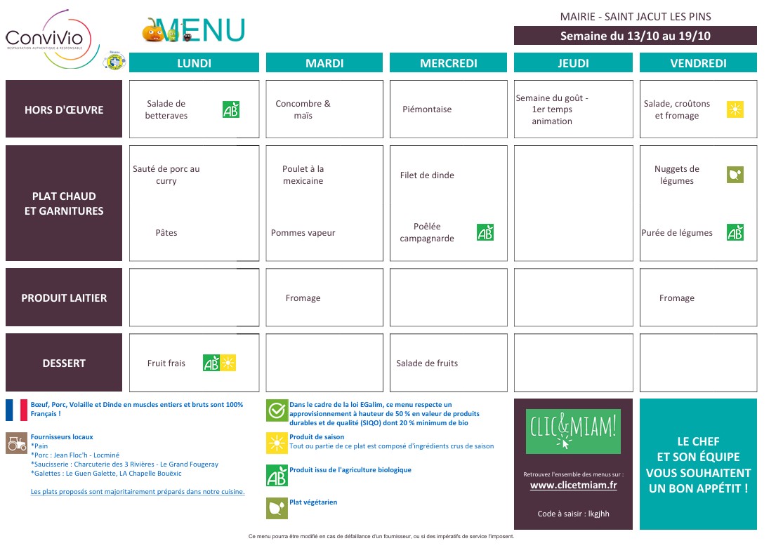 Pour consulter les menus, nous vous invitons à vous connecter au site clicetmiam.fr